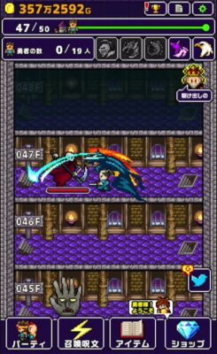 プレイヤーは勇者や仲間に出来る冒険者を雇って、各階層にいる魔物を倒していきます。